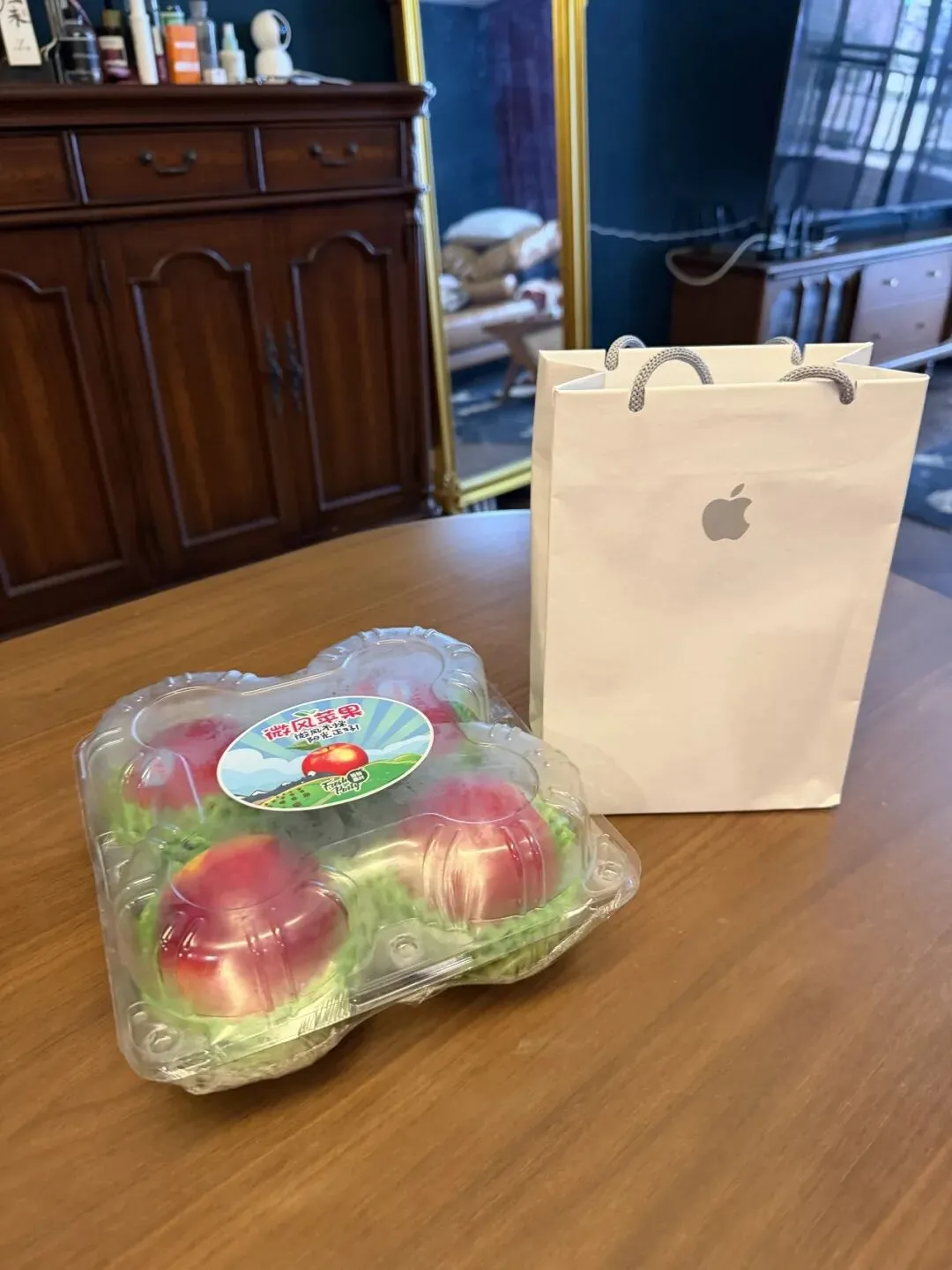 上周五他下班来找我,提了一袋苹果。