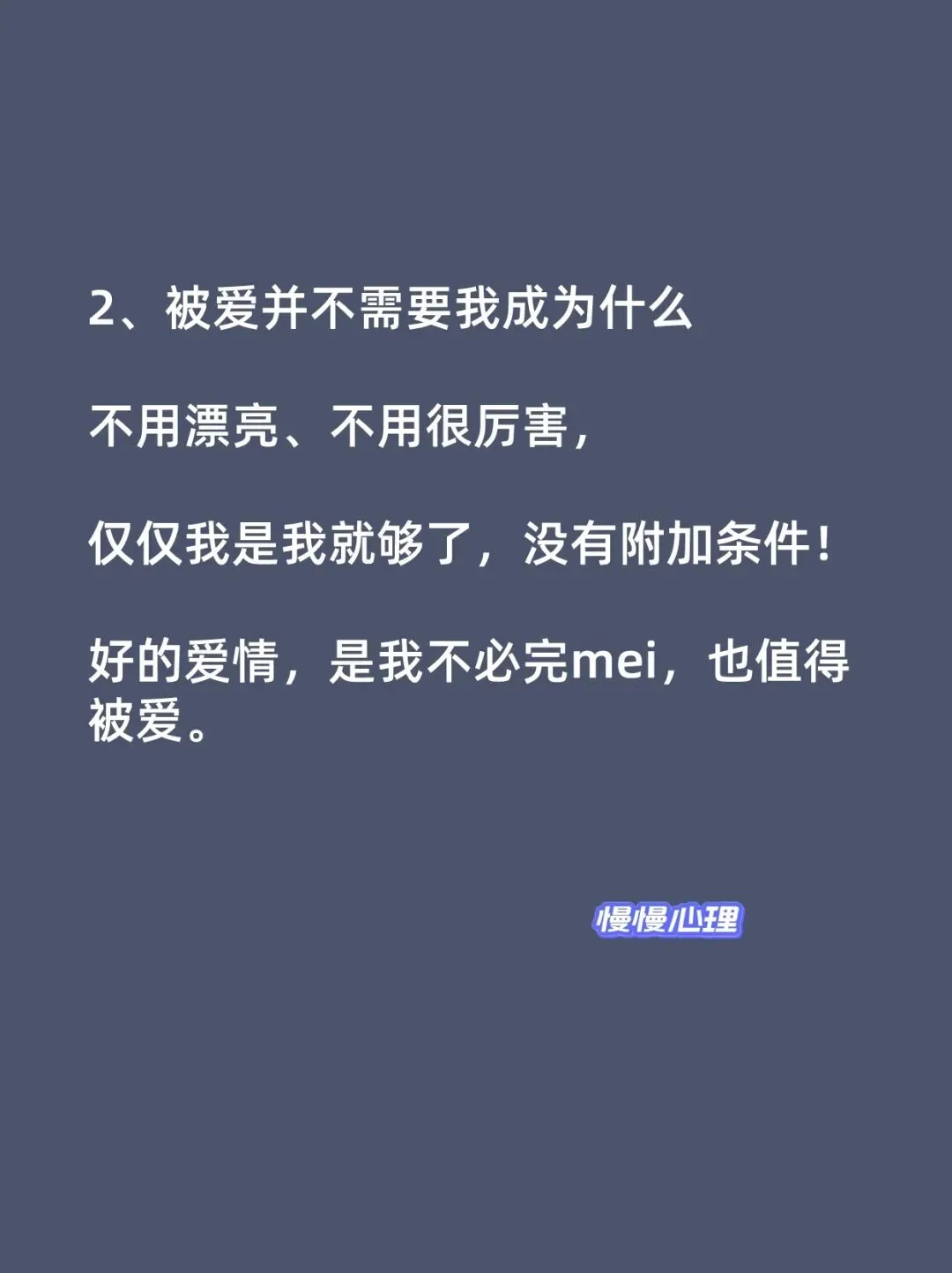 不用漂亮、不用很厉害,仅仅我是我就够了,没有附加条件!好的爱情,是我不必完美,也值得被爱。