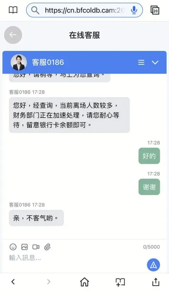 4. 客服话术漏洞:面对提现申请,客服仅以“财务处理中”为由拖延,无任何具体处理流程和时限,是虚假平台的典型操作。