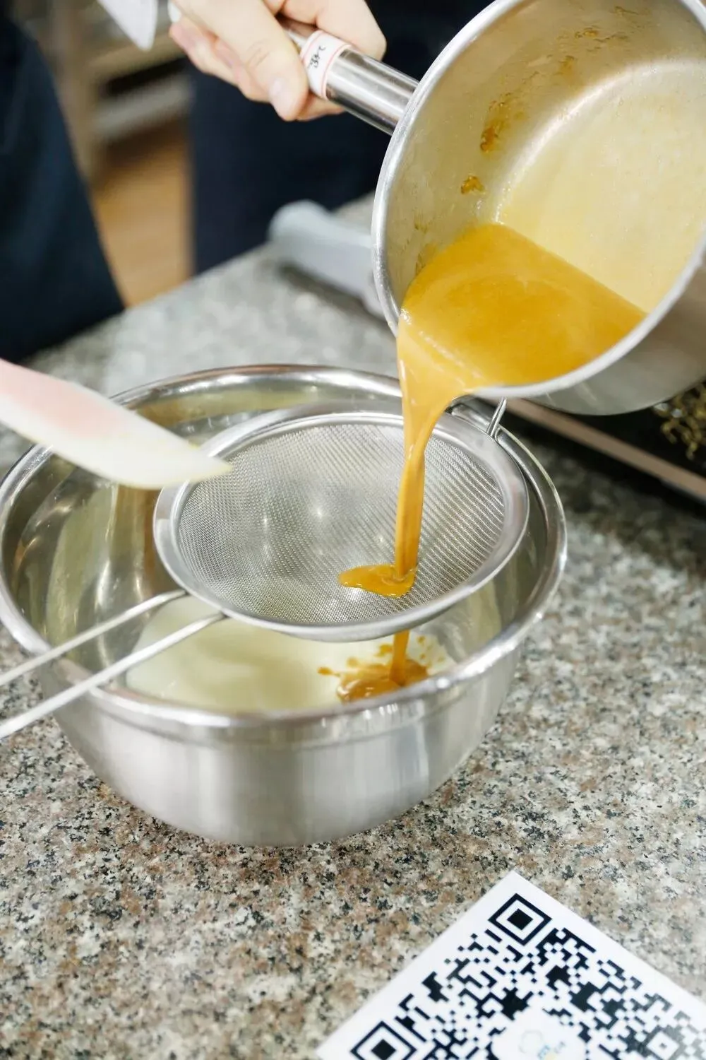 1、将幼砂糖分次倒入锅中,加热至溶化出现焦糖色;牛奶、淡奶油加热倒入焦糖中,搅拌均匀,切块的黄油加入焦糖酱中,搅拌均匀。2、温度降至80℃时过滤到溶化后的白巧克力中,用料理棒搅拌,装入裱花袋,平铺冷却。1