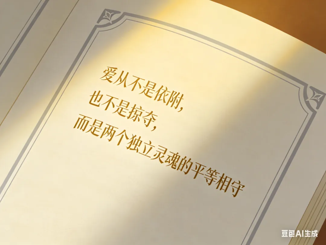 分手后的很长一段时间,我陷入了自我怀疑与否定,不明白为什么付出了那么多,却还是留不住想要的温暖。直到读到厄休拉与伯金的故事,读到那句点醒我的金句,我才恍然大悟,原来我从一开始就搞错了爱的本质。我所理解的爱,是失去自我的依附,是束缚彼此的捆绑,是把自己的人生寄托在别人身上,却忘了,真正的爱,从来都是两个独立个体的双向滋养,是彼此尊重、彼此包容,是各自完整,彼此照亮。
