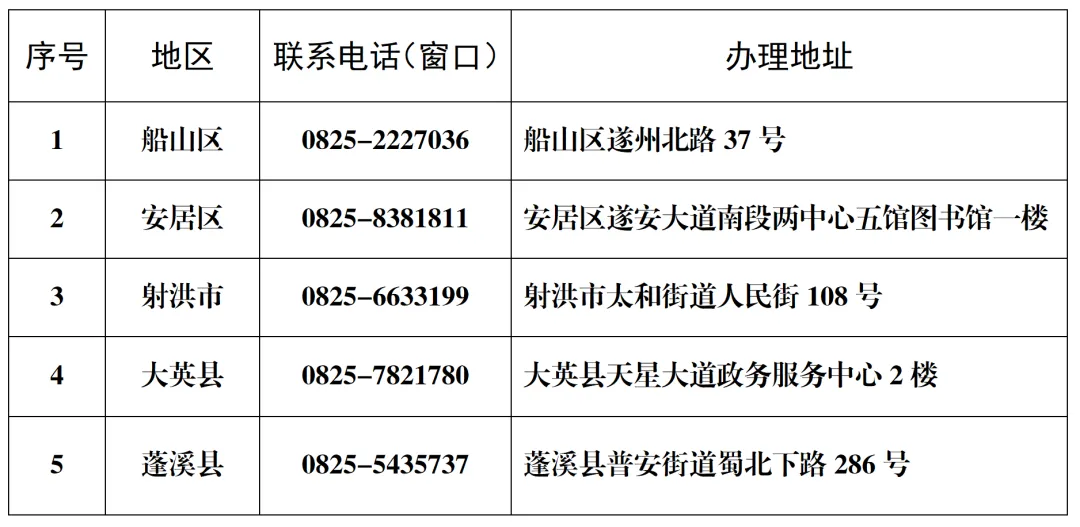 遂宁市5个婚姻登记处