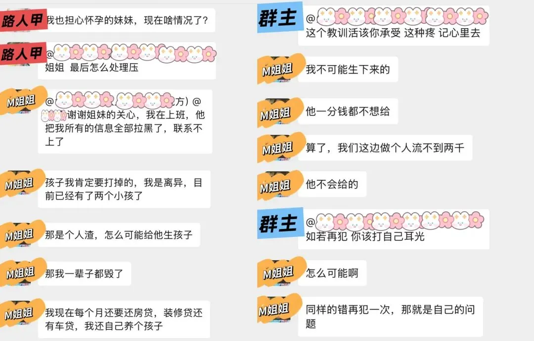 群里大部分姐妹都是大骂渣男,然后劝M姐姐快分手,快去医院,自认倒霉吧!只有一个说:“孩子是无辜的……”,劝M姐姐生下来。被群主直接夺命三连问:你养?你出钱?出多少?——群主再次嘴替我了,这时候圣母的慷他人之慨,实在不可取。