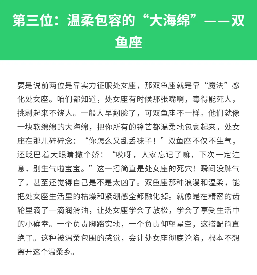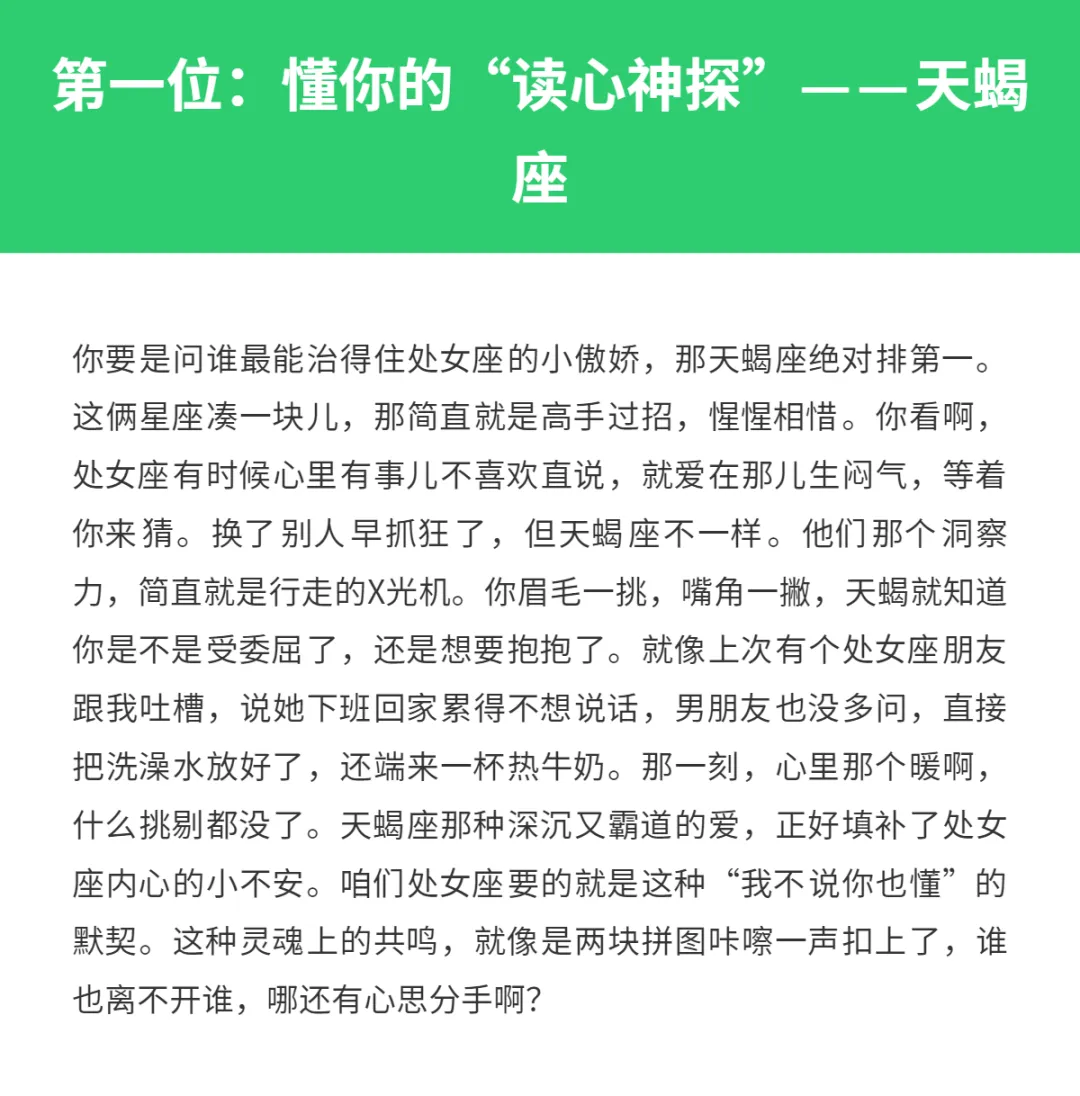 不过话说回来,这世界上还真有那么几类人,要是和处女座谈恋爱,那简直就是天雷勾地火,稳得不行,基本不会分手。