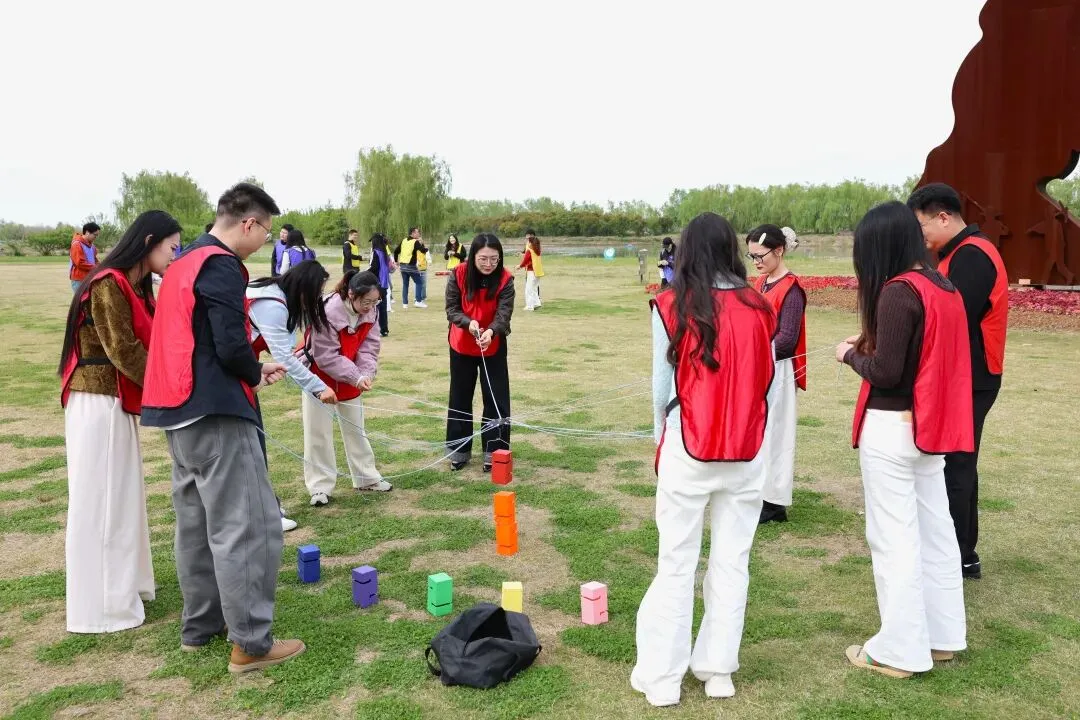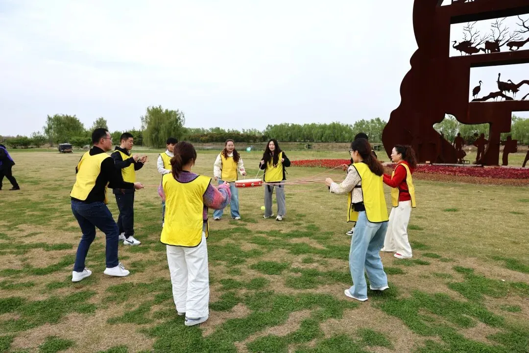 如果说环岛观光是温柔破冰,趣味游戏环节便是全场氛围的高能时刻!活动开场先安排轻松暖场互动,帮助大家卸下拘谨、放松身心,快速消除陌生感。现场精心设置你画我猜、团队齐心鼓、合力建塔、十人九足等趣味团建游戏,兼顾趣味性、协作感与互动性,让青年们在玩乐中快速熟络。