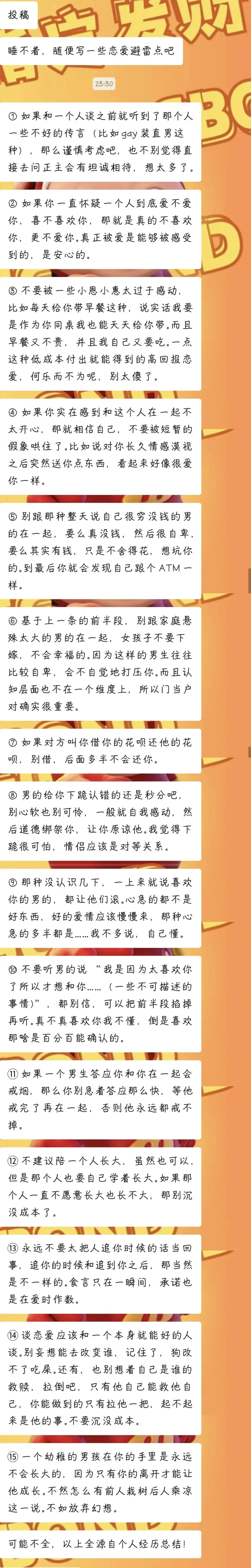 某邑同学投稿:睡不着,随便写一些恋爱避雷点吧